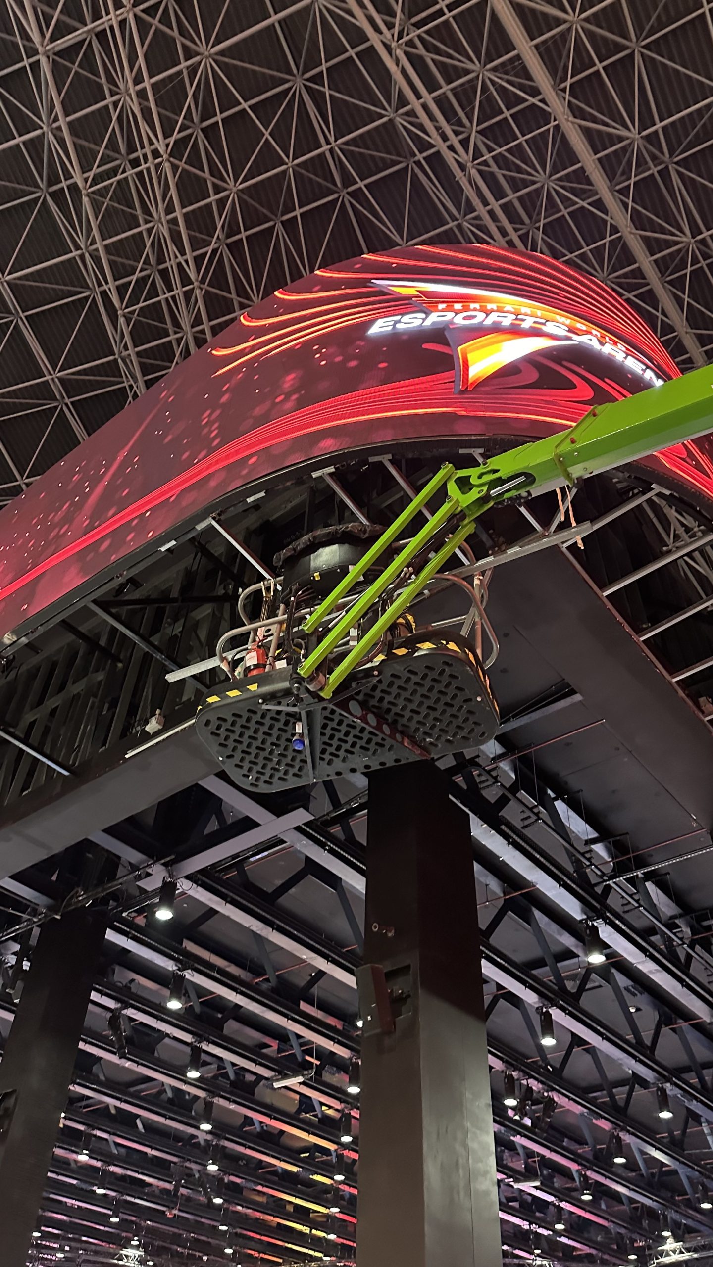 The impressive 63 meter long ribbon LED wall that wraps around the exterior, serving as a dynamic display for live event updates, scores, and promotional content.