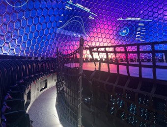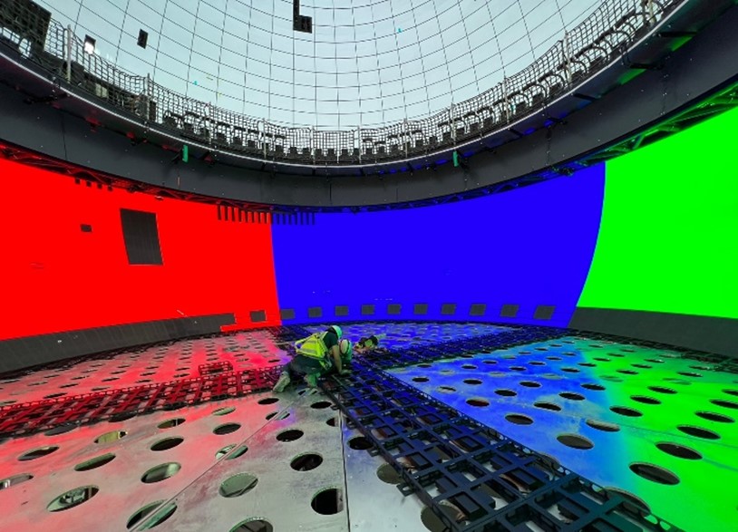 A 17m diameter full sphere with 75 million pixels and 2 times 6K LED technology! With its tilting and rotating motion system, supplied by Intamin amusement rides, the unparalleled sphere accommodates 80 people, each enjoying a unique viewing experience. In-seat audio and 4D effects add an extra layer of excitement.